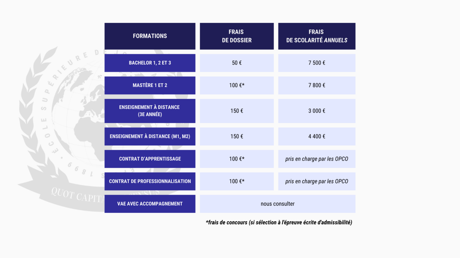 Les frais de dossier sont à régler uniquement à la fin du processus de candidature.