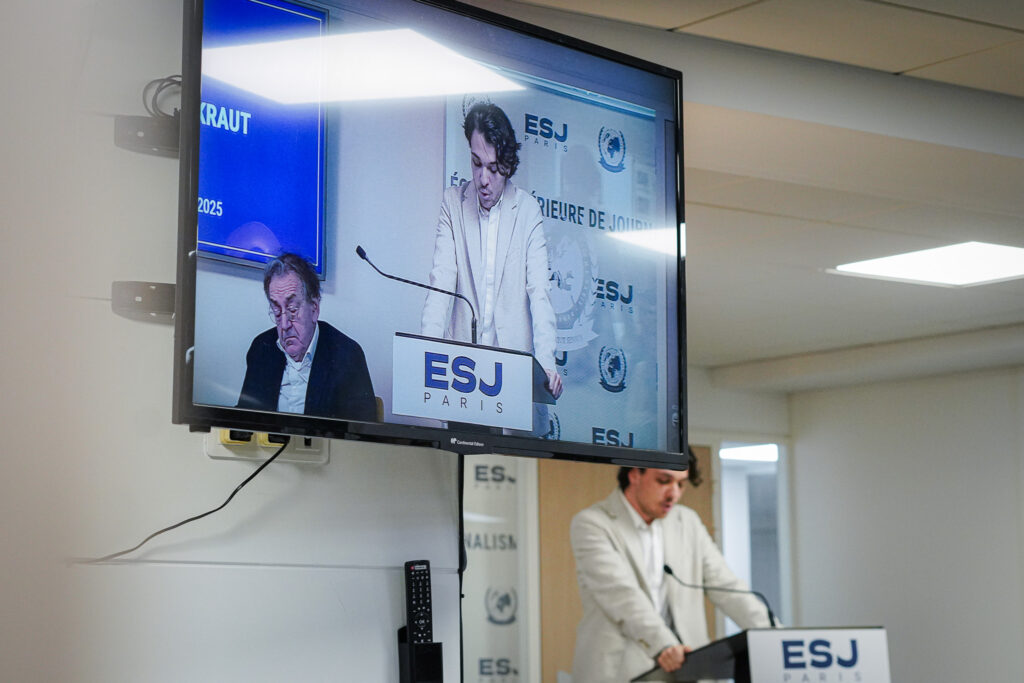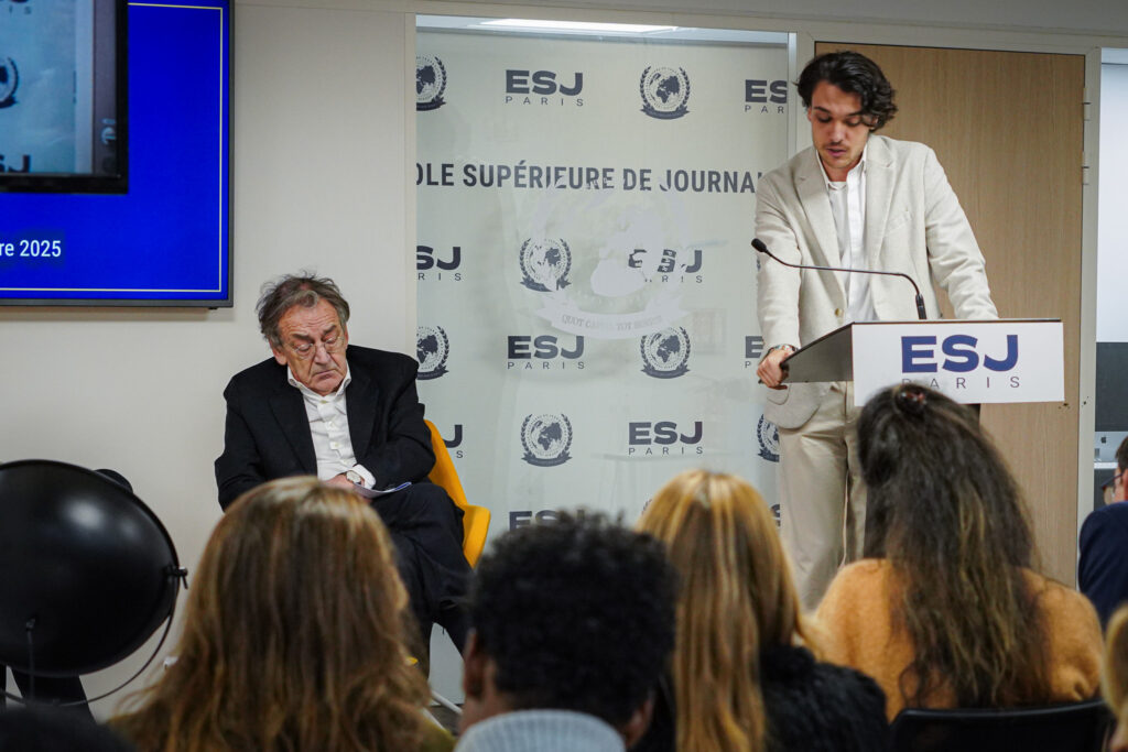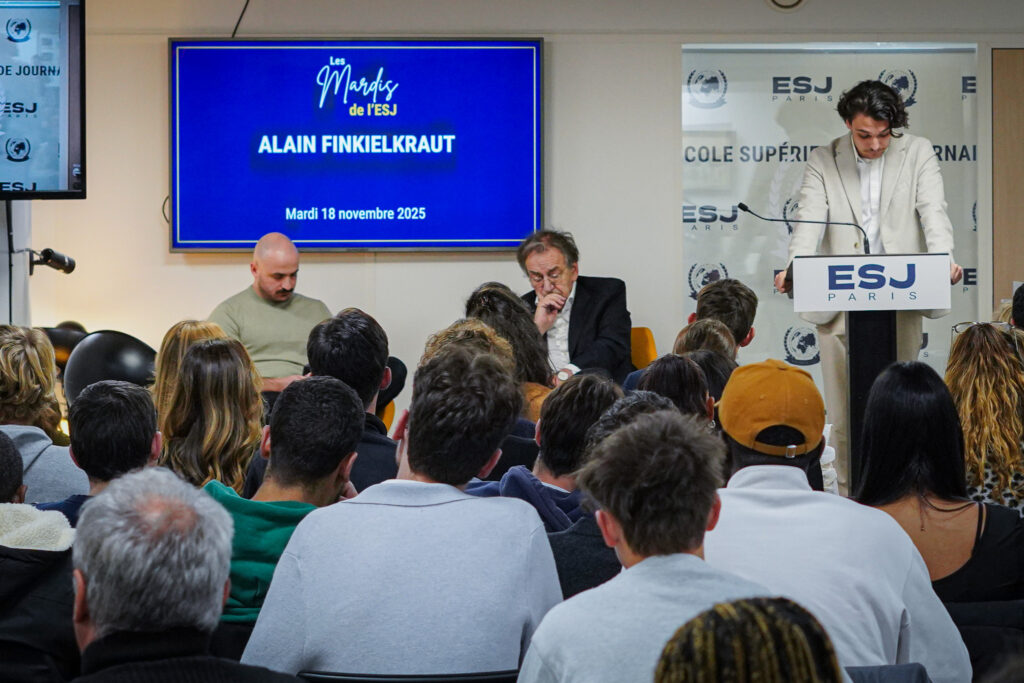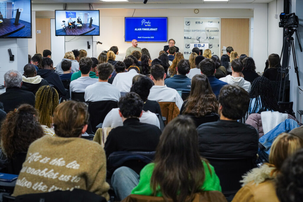 « C’est la seule question essentielle que le journaliste doit poser », lance d’emblée le philosophe Alain Finkielkraut devant les étudiants de l’ESJ Paris ce mardi 18 novembre.